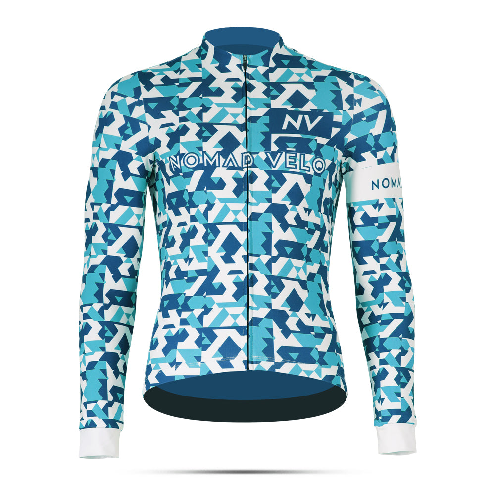 Blue Сamouflage Long Sleeve Jersey for Long Climbs - Сamouflage Jersey
